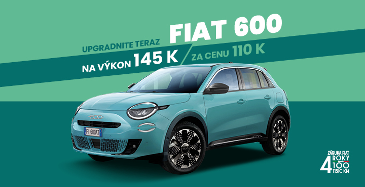 Nový Fiat 600 prináša ikonický FIat dizajn v spojení s upgradom priestoru a Dolce Vita. Teraz aj s dodatočným výkonom zadarmo, so 4 ročnou zárukou v cene a automatickou dvojspojkovou prevodovkou s financovaním už za 20 990 €.